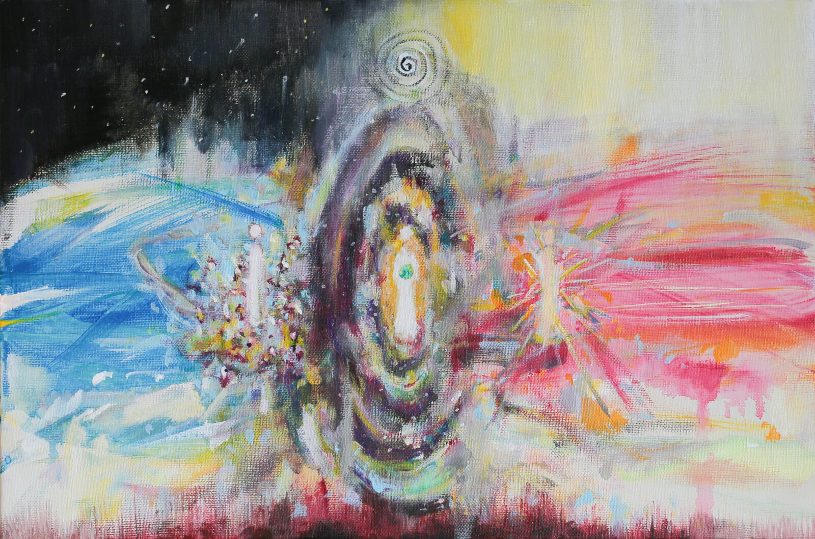 インナージャーニーのセッションでは、催眠療法(ヒプノセラピー)を用いて、あなたを潜在意識の領域へと導き、癒しや意識変容の体験を生み出します。そして、旅を通してあなたの中に生まれる前向きな生命エネルギーやビジョンを絵画として描くことで、いつでも見て触れられるカタチにしてお渡しします。