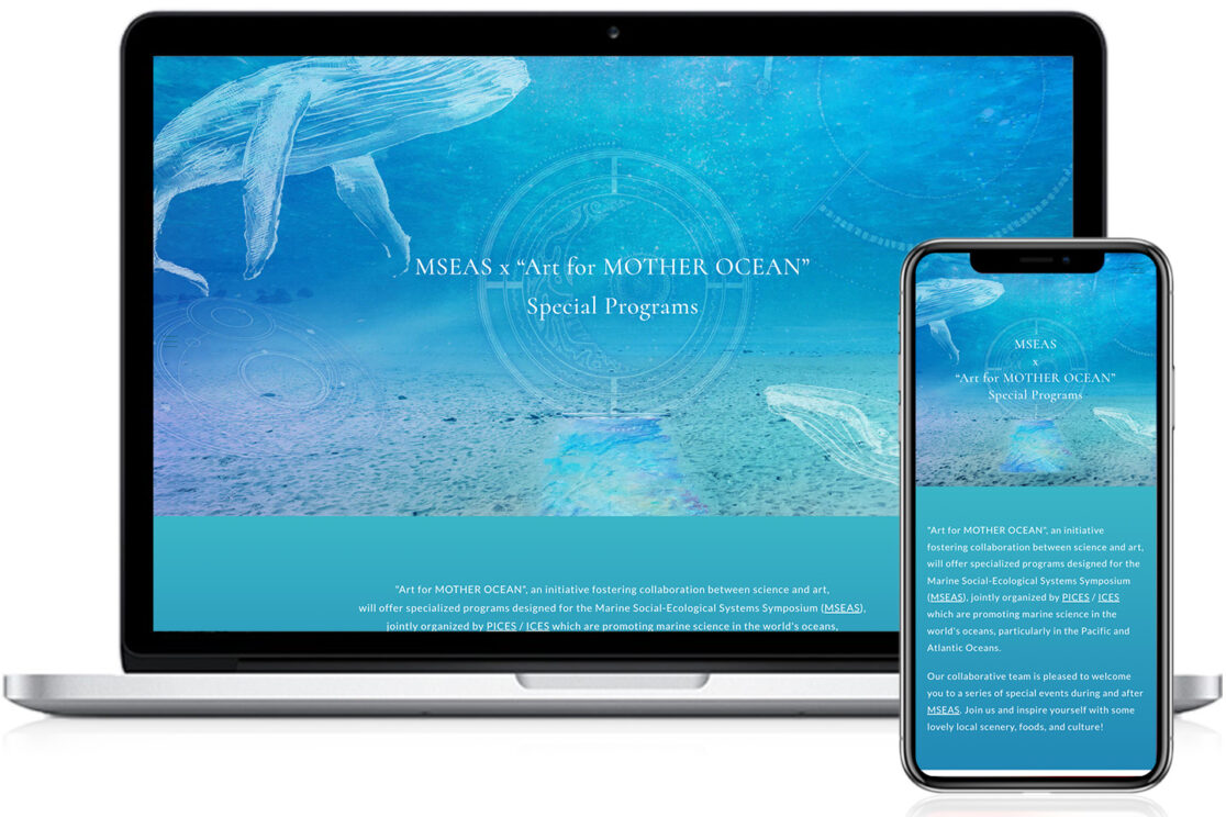 Art for Mother Oceanという、科学×アート×スピリチュアリティーの可能性を探求し続けるプロジェクトを始めた友人からのご依頼で、6月に横浜パシフィコで行われるMSEAS(海洋社会生態学シンポジウム)内での特別プログラムを周知するサイトとキービジュアルの制作をしました。