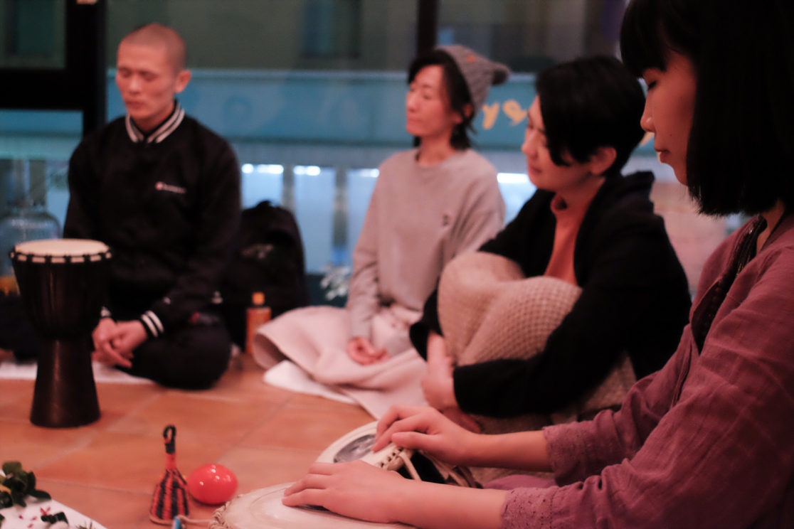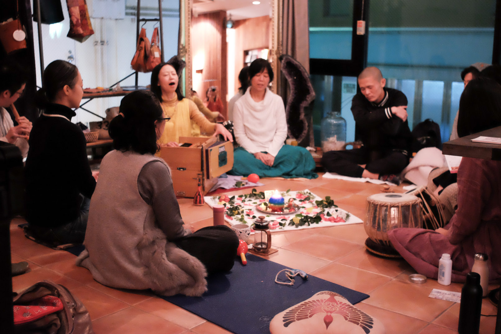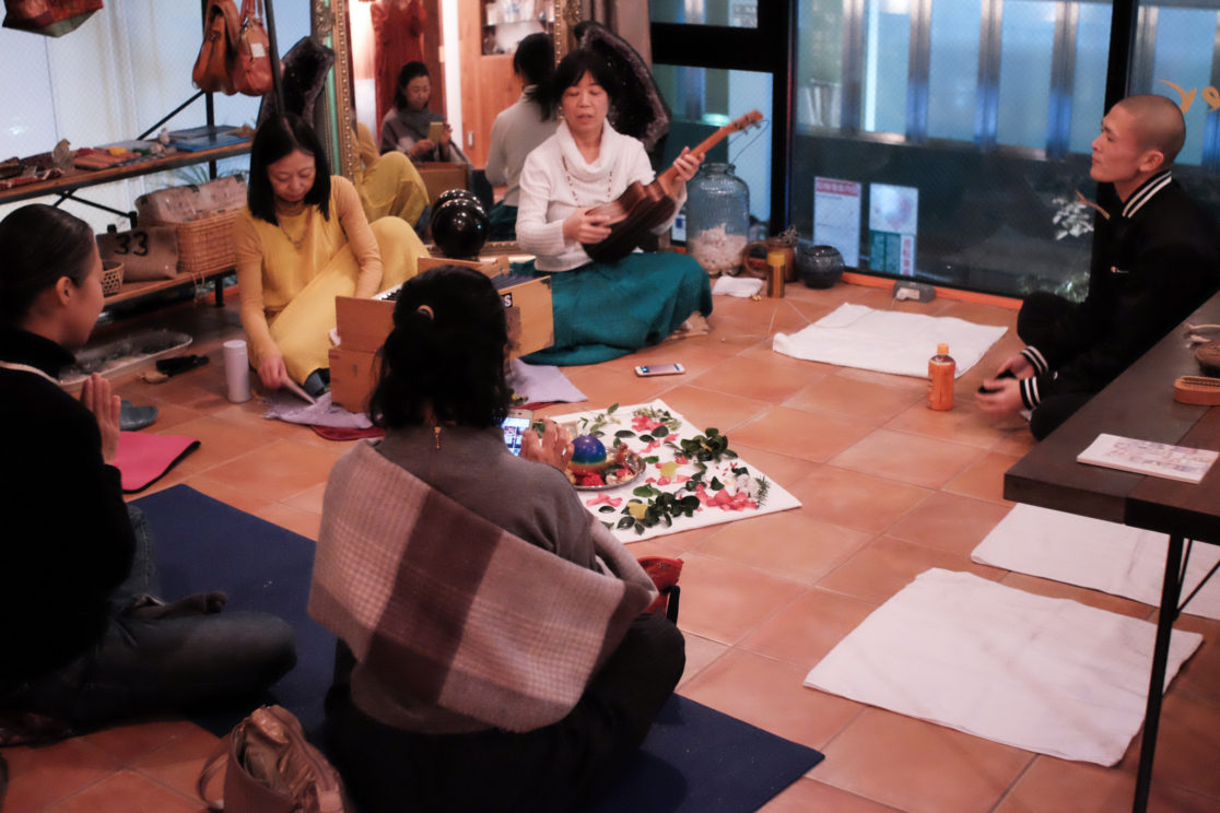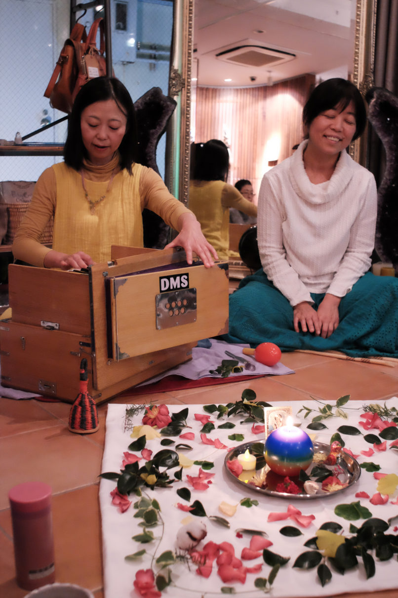 キールタンをみんなで歌ったり、楽器や声で奏でたり、のんびり聴いて休んだり、自由に過ごす、優しい時間を楽しみました。