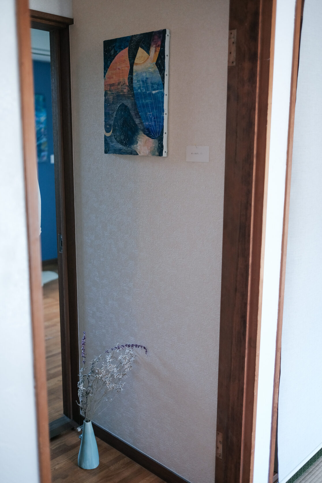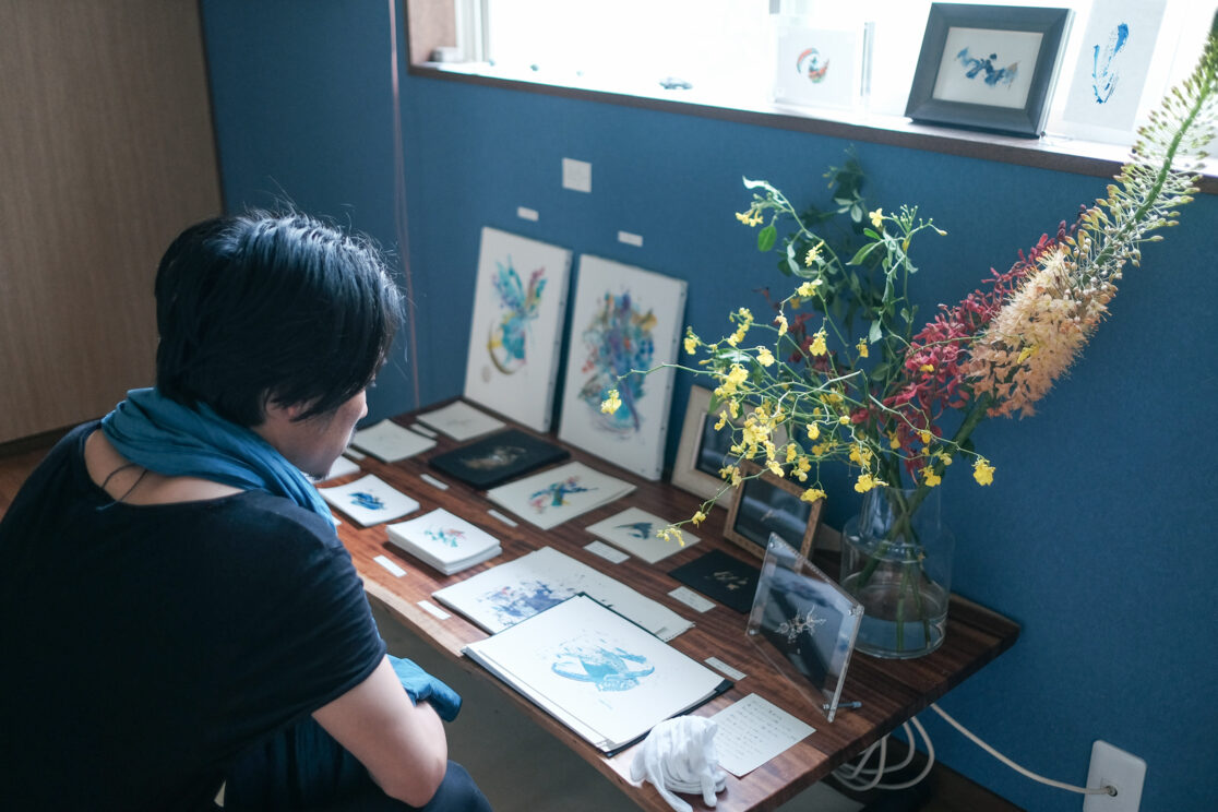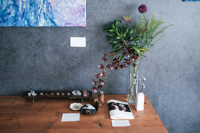 初の個展を自宅で行うということで、お部屋の壁紙や間取り、家具を生かしたレイアウトや、導線を心がけました。