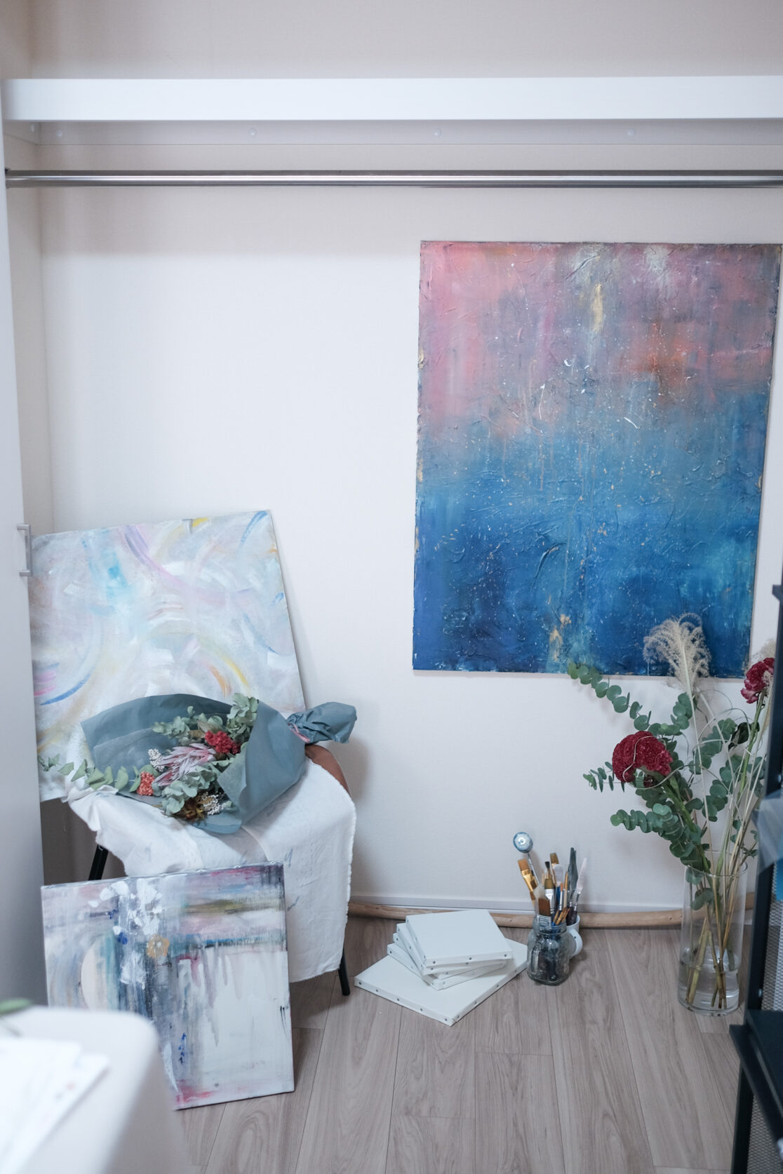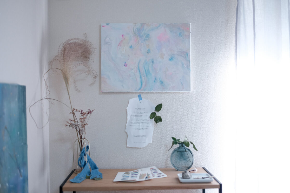 ネイリストとしての10年のキャリアをストップし新しい暮らしを始める友人の、自宅で行う個展のアートディレクションを担当。会場のレイアウトを行いました。
