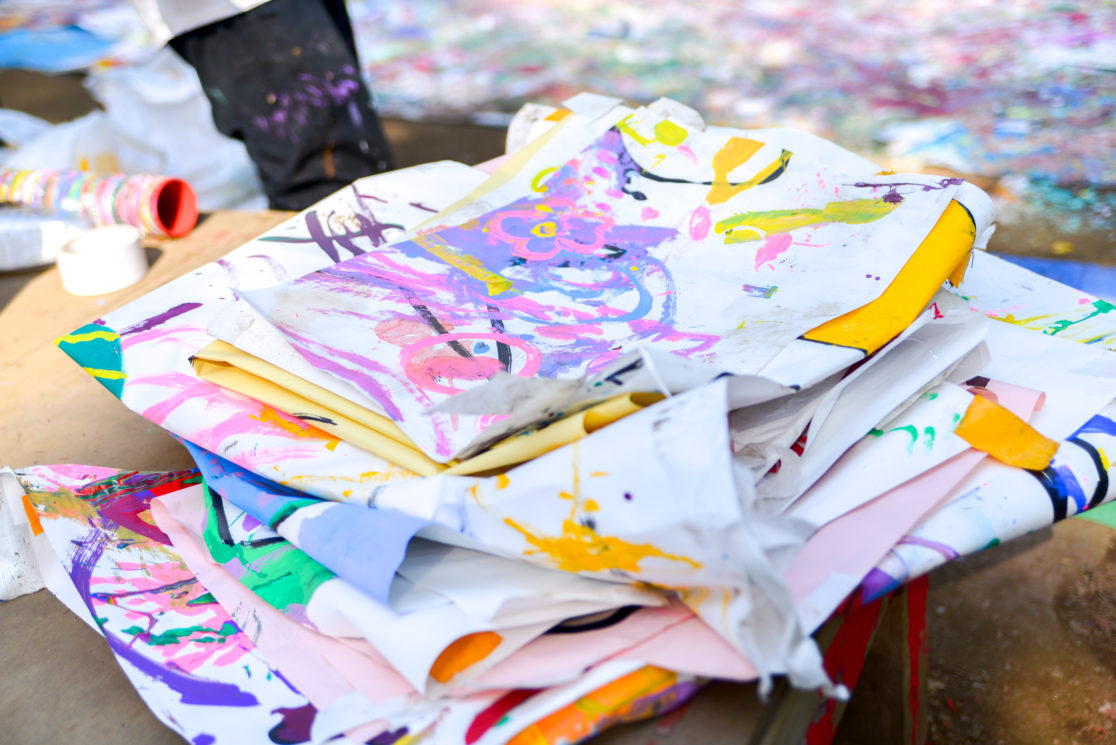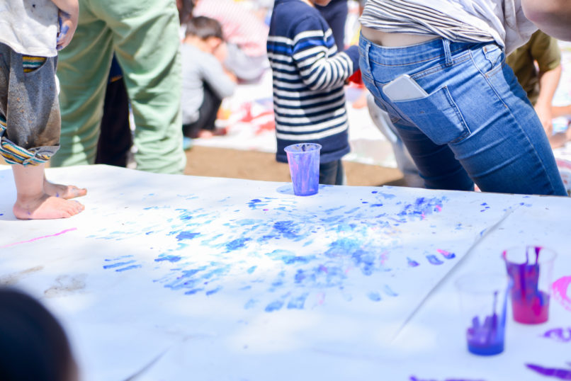 大人も子どももなく、みなさん絵の具まみれで、心から楽しんでいる様子がとてもうれしかったです。